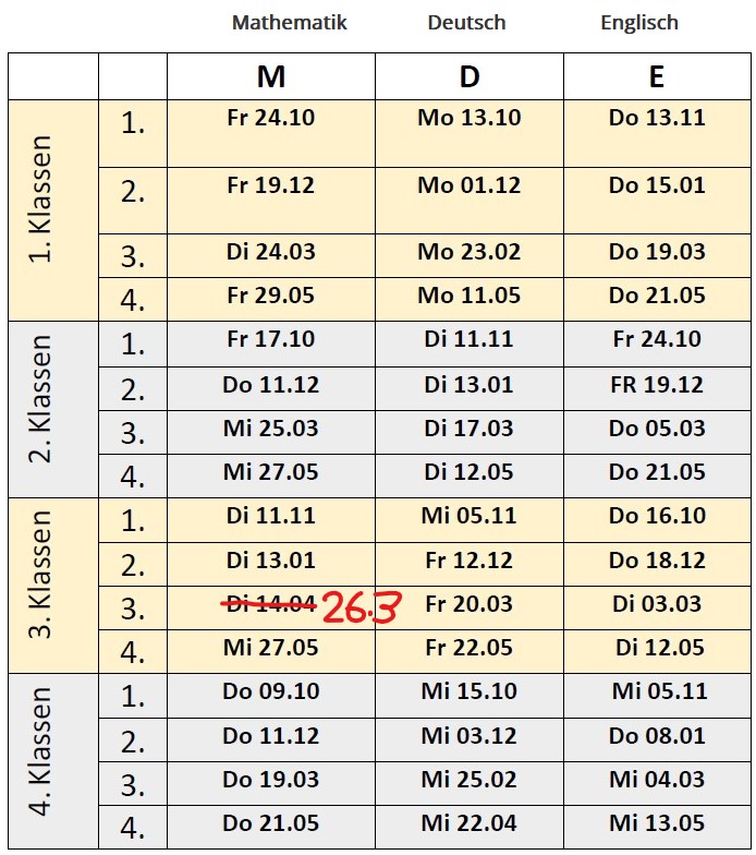 Schularbeitstermine 2025/26